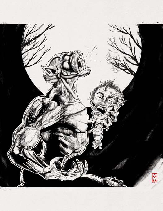 #Inktober day 18 #Moon I did an #illustration of a cross between a #werewolf and #chupacabra #inktober2021 #inktoberchallenge #comicartist @inktober @mrjakeparker