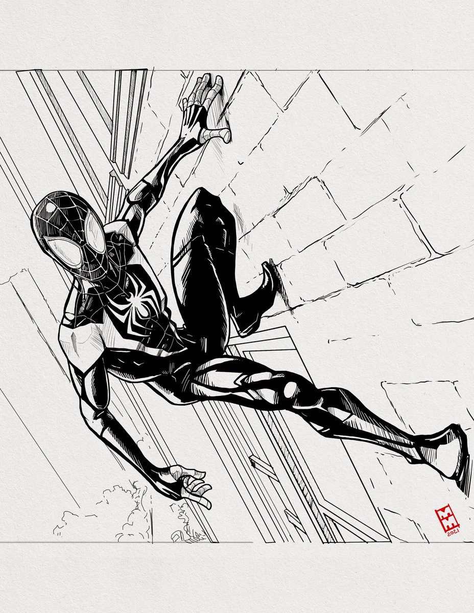 #Inktober day 12 stuck #illustrationart of #milesmorales @SpiderVerse @SpiderMan @inktober @mrjakeparker @MarvelStudios @Marvel @SonyPictures @SpiderManMovie #inktober2021