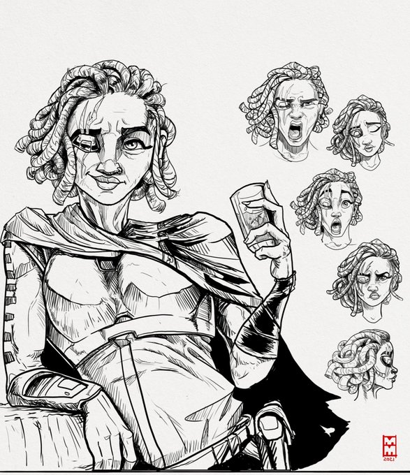 #inktober day 29 #patch I did an #illustration and character design sheet of Jahma, an assassin for hire from my graphic novel Armor. #conceptart #characterdesign #design #comicart #inktober2021 #inktoberchallenge @rebelstudioart @inktober