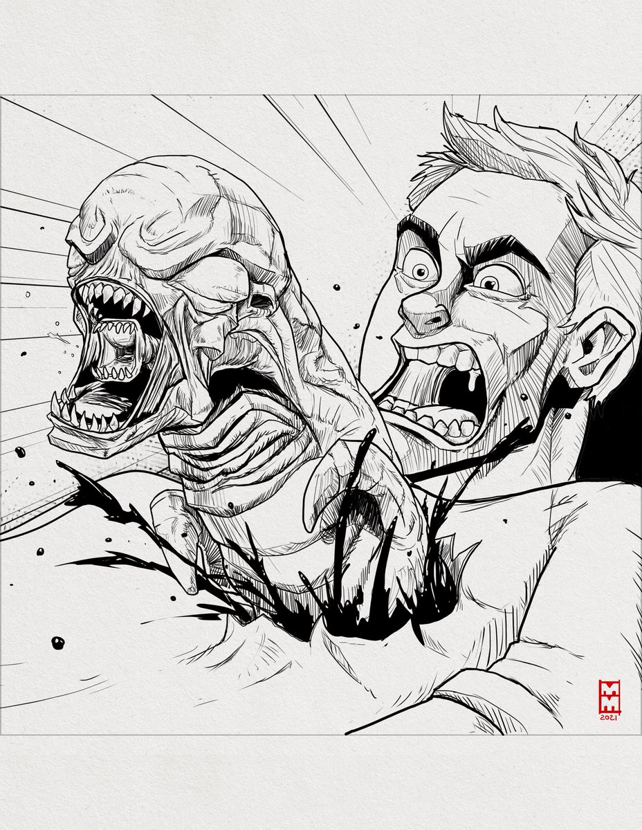 #Inktober day 20 #SPROUT #illustration of @#xenomorph #chestburster from @AlienAnthology #inktober2021 @inktober @mrjakeparker