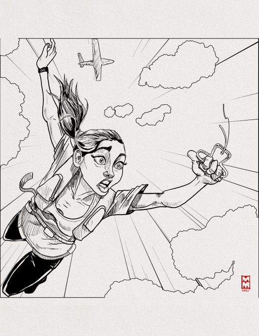 #inktober day 25 #splat did an #illustration of a #skydiver with a ripped ripcord. #comicart #inktober2021 #inktoberchallenge @inktober @mrjakeparker