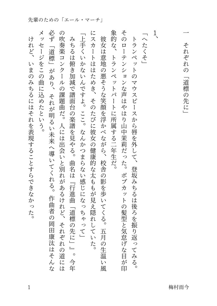 『破局百合アンソロジー セツナ』 に寄稿した『先輩のための「エール・マーチ』のサンプルを公開します。吹奏楽と破局百合で書きたかったことを詰め込みました。詰め込み過ぎたかもしれません。青華団「く31a」で頒布されるのでよろしくお願いします!!1/2 #創作百合 #コミティア144 #COMITIA144