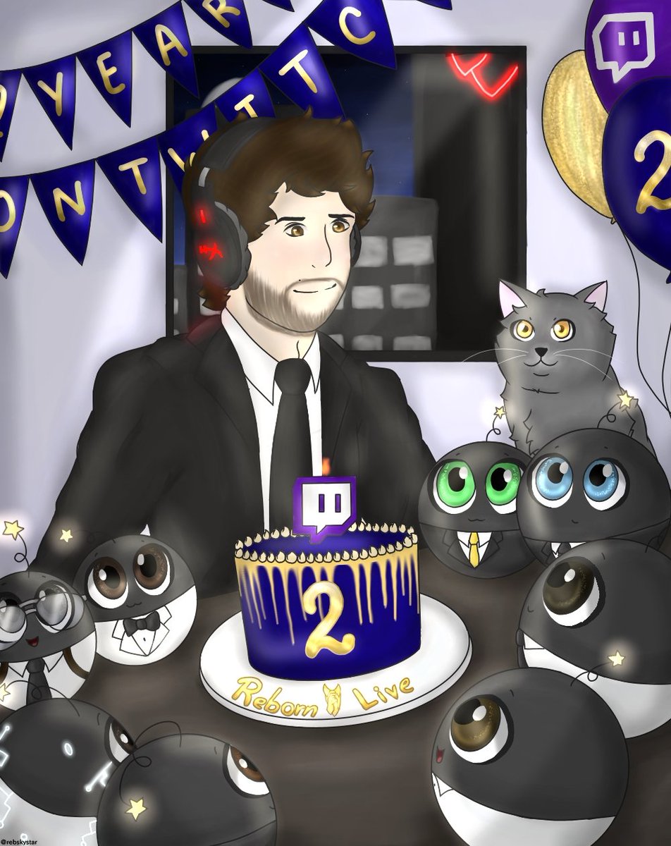 💫 | 2 Years On Twitch!! #Rebornlive #FanartsForReborn #2YearsWithReborn Pd: El dibujo es un re draw de el dibujo del primer aniversario y el diseño de las bolitas son inspirados en los emblemas de sub del canal <3