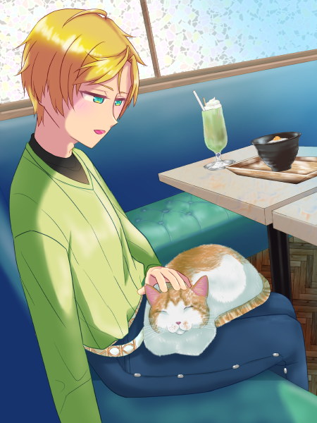 "Cat Cafe with Levi" I've made it on time! Happy Birthday bestie!! #obeymefanart #ObeyMeBD #HappyBirthdayLeviathan #obeymeleviathan