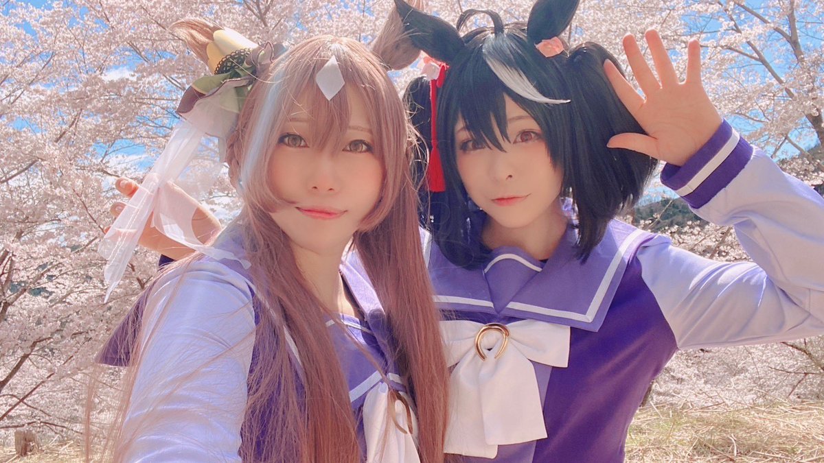 【コス】そくほ〜! 今日はサトちゃん勝負服と制服でキタちゃんと撮影してきたよぉ〜🐎💎✨ 楽しかったぁー(✌'ω' ✌)
