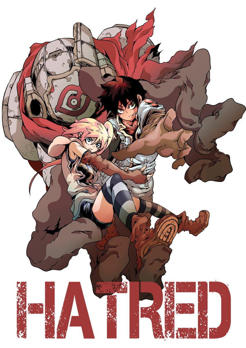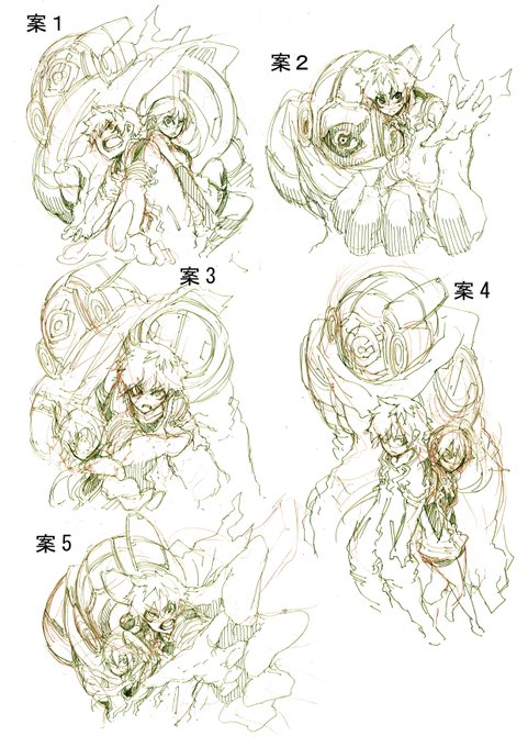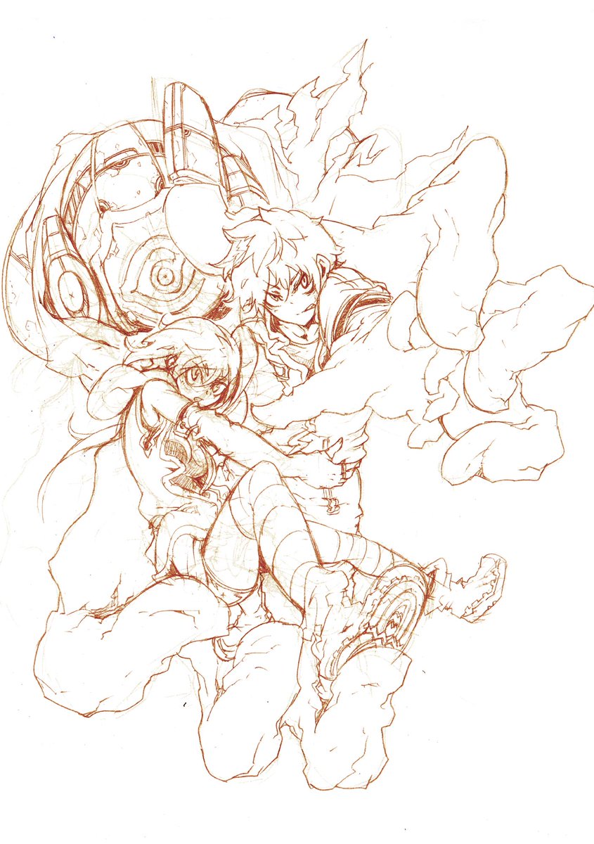 #このタグを見た人はラフ画とその完成絵を見せる ヘイトレッドで最初に描いたカラー絵のやつ ラフ2と5あたりが途中で合体した感じ