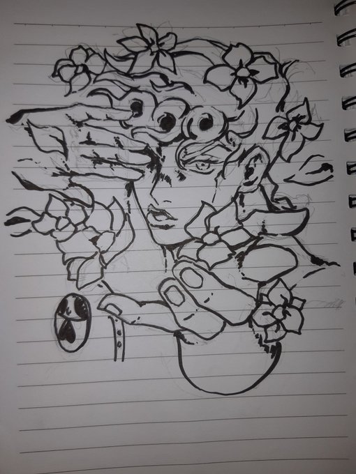 I decided I will do a #JoJosBizarreAdventure themed Inktober. For day 1; Gargoyle, I drew Made in Heaven 🕙🕚🕐 #inktober2022 #rkgk #sketch