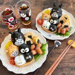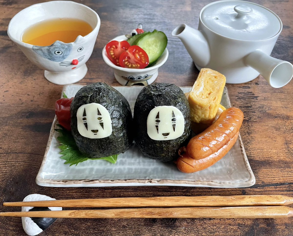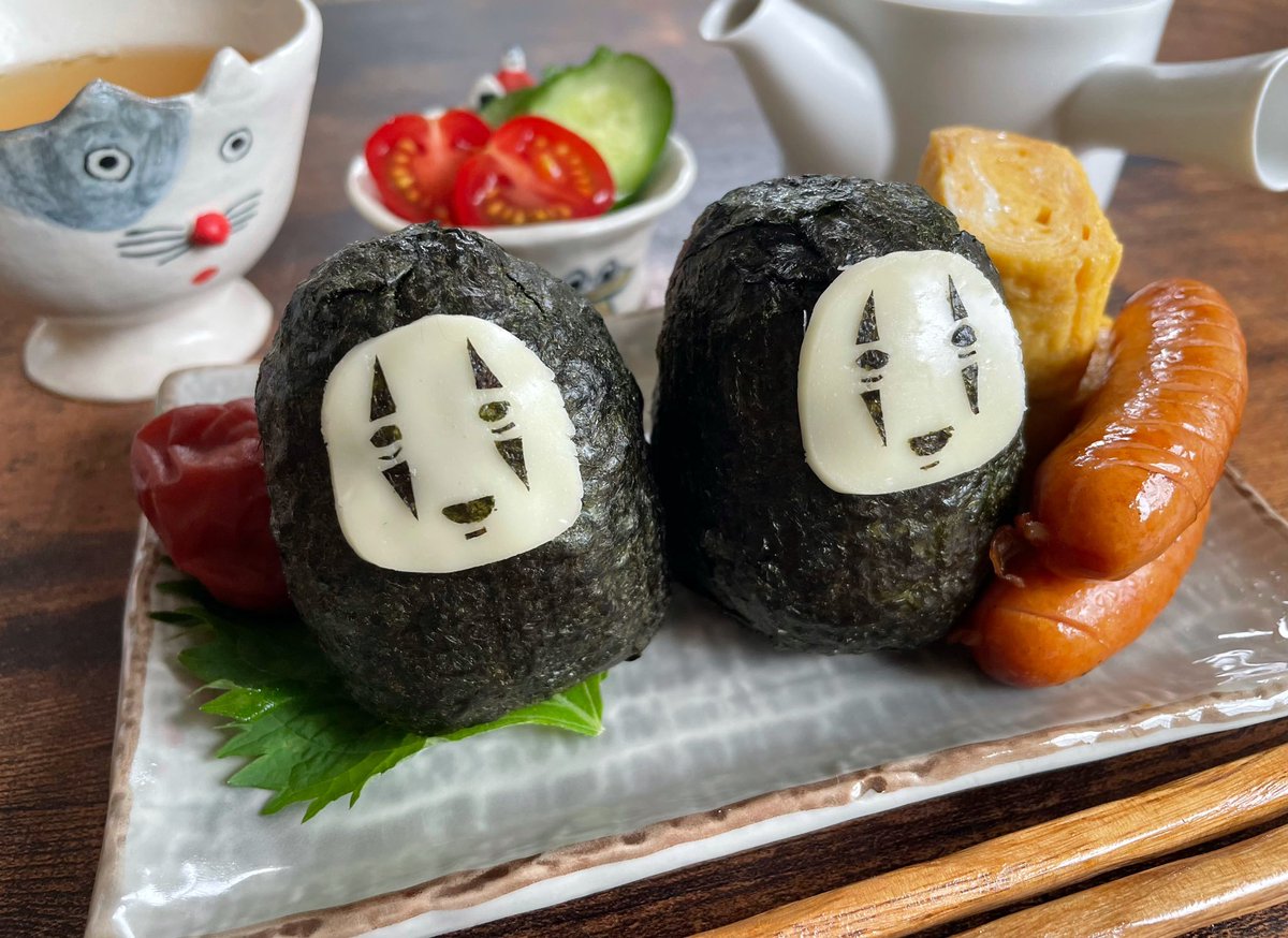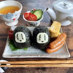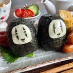 台風で外出できなかったので、お家にあるものでカオナシおにぎりセットを作ってみました🍙