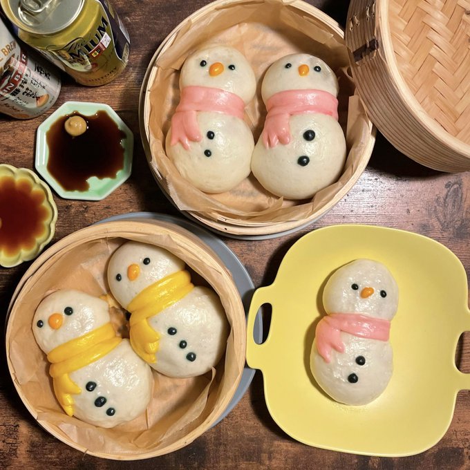 89 1525 スノーまんを作ってみました⛄️ 頭の部分はピザまんで、胴体は肉まんにしてみました!一度で二度美味しい✌︎ ほかほかで温まりました☺️ 22/12/29 18:23