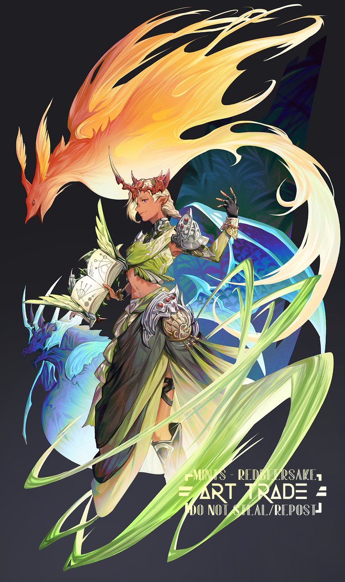 Hope I'm not too late for #PortfolioDay ! I'm Mints! I'm a SEAsian illustrator who loves drawing my FFXIV WoLs and big character pieces! I've also just released an illust book! 🥰