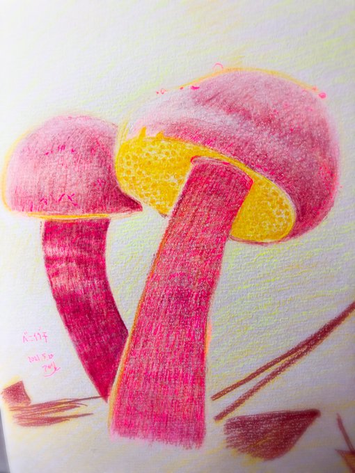 0 2 やきいもみたいですね、、、 #ベニイグチ #きのこ #色鉛筆 21/05/20 20:19
