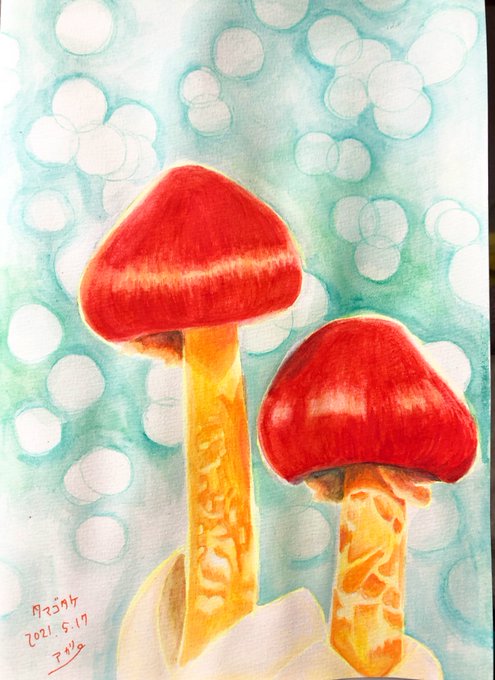0 7 今日ゎ赤いきのこをいっぱい描いてみました #きのこ #色鉛筆 21/05/17 01:08