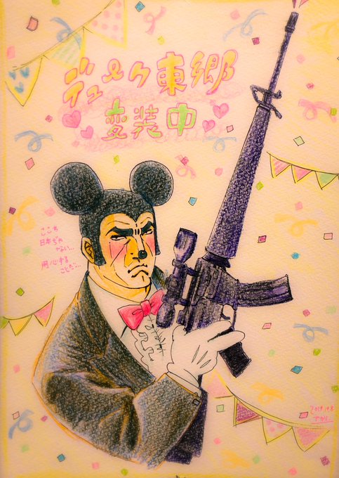 1 5 ゴルゴミッキー🤣✨🌟❣️❣️❣️❣️❣️ちょ…ガチ描きすぎた、、、 #色鉛筆 #アナログ #ゴルゴ #ミッキー 19/10/08 03:14
