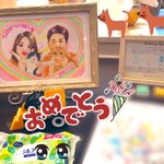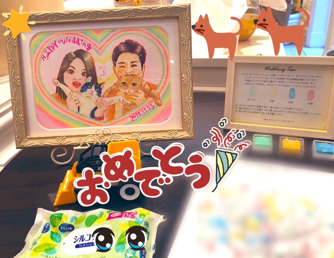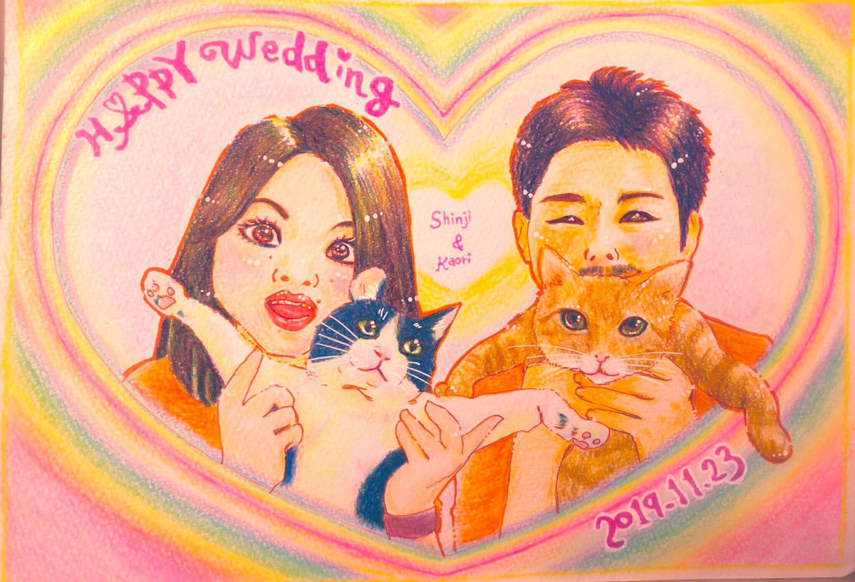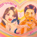 0 3 1123ゎ中友の結婚式でした💒🎈✨ 今流行りの?Wレインボーでかこってみました🌈🌈 #ウェルカムボード #アナログ #色鉛筆 #猫絵 19/11/28 21:40