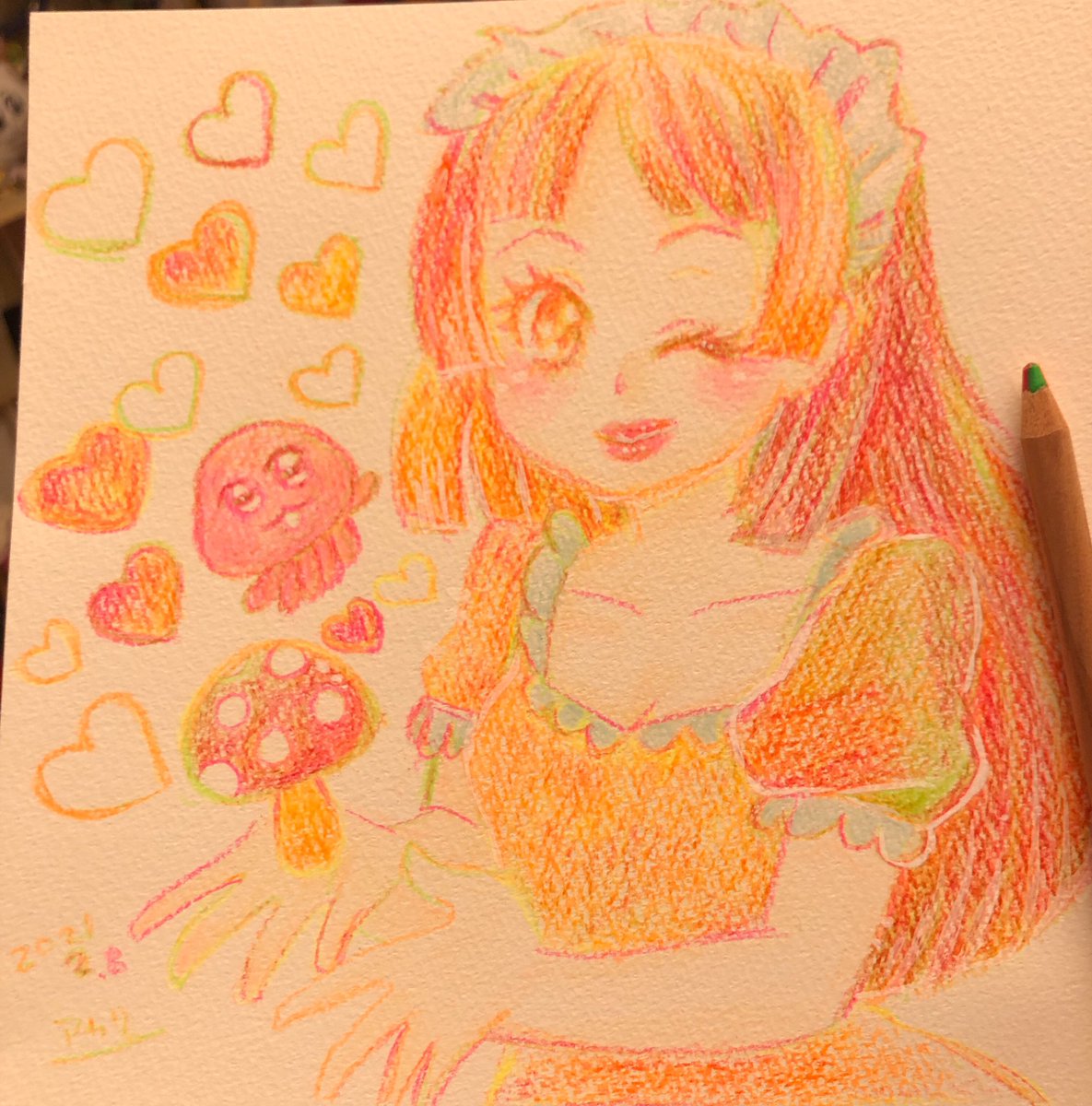 0 7 描き終えたな☺️ #ほのんぴ #色鉛筆 #アナログ 20/01/04 21:59