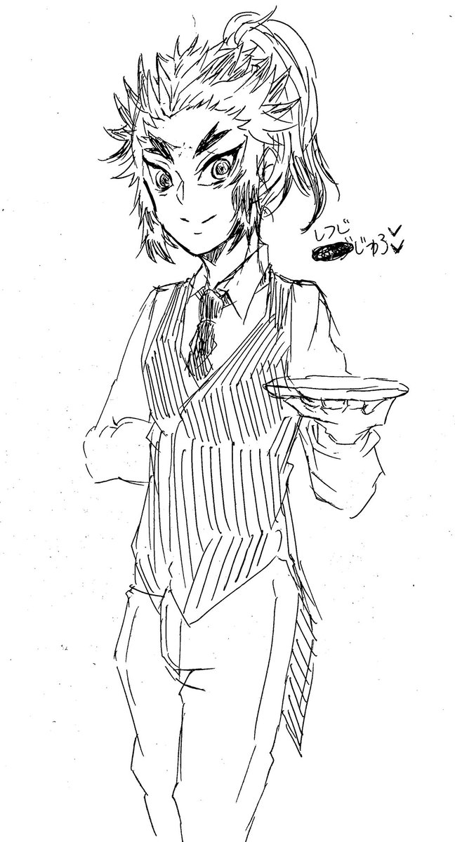 0 7 執事じゅろが最高だなっていう落書き ペンがめっちゃ伸びる…アナログむず 21/02/03 18:48