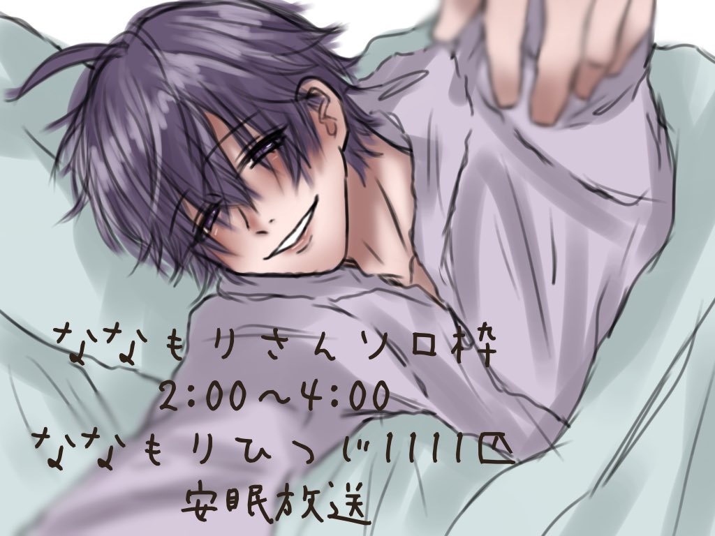 ななもりさんソロ枠おつもりです☺️💜 ななもりひつじ1111匹お疲れ様でした、 素敵な安眠放送でした…… もし録画残してくれたり、動画化されたりしたら寝る前毎日聞いて寝ますね😪💜 大好きです、おやすみなさい💜💜 #ななもりぎゃらりー #ななもりなま #すとぷり24時間リレー生放送