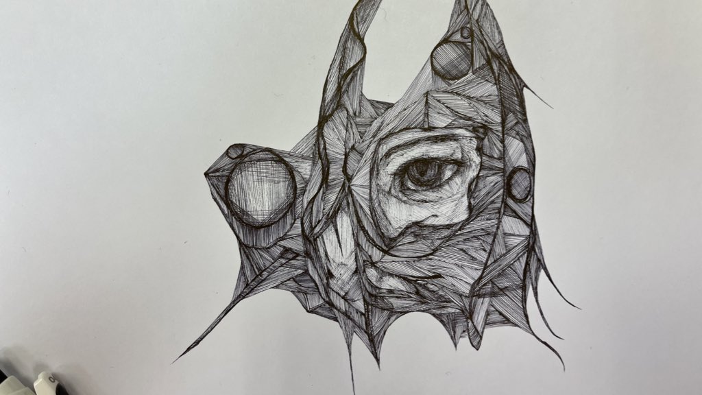 3 14 お絵描きオールで いつものペン一発描きの途中段階! 描く気失せました!! (暇すぎて完成させたが。) #お絵描き #ペン画 22/08/10 07:03
