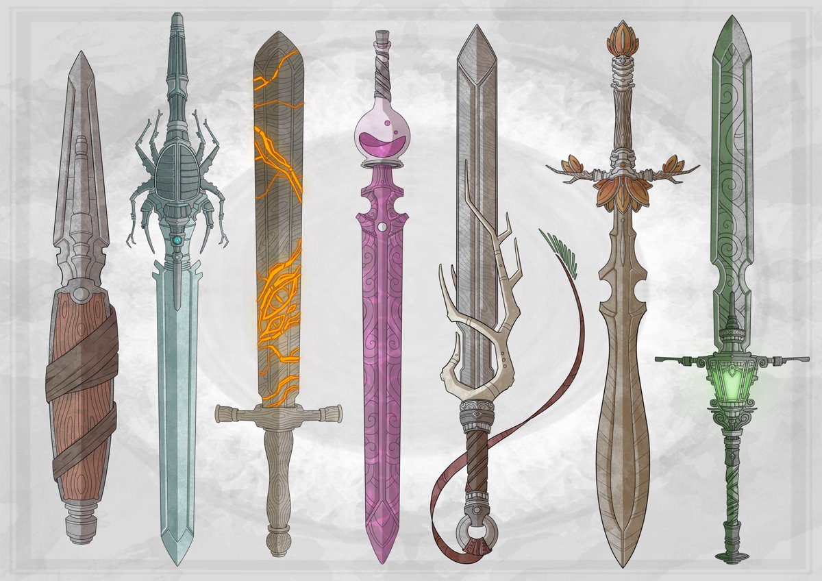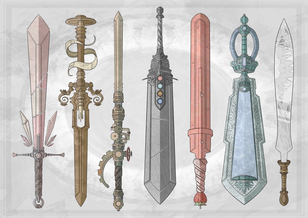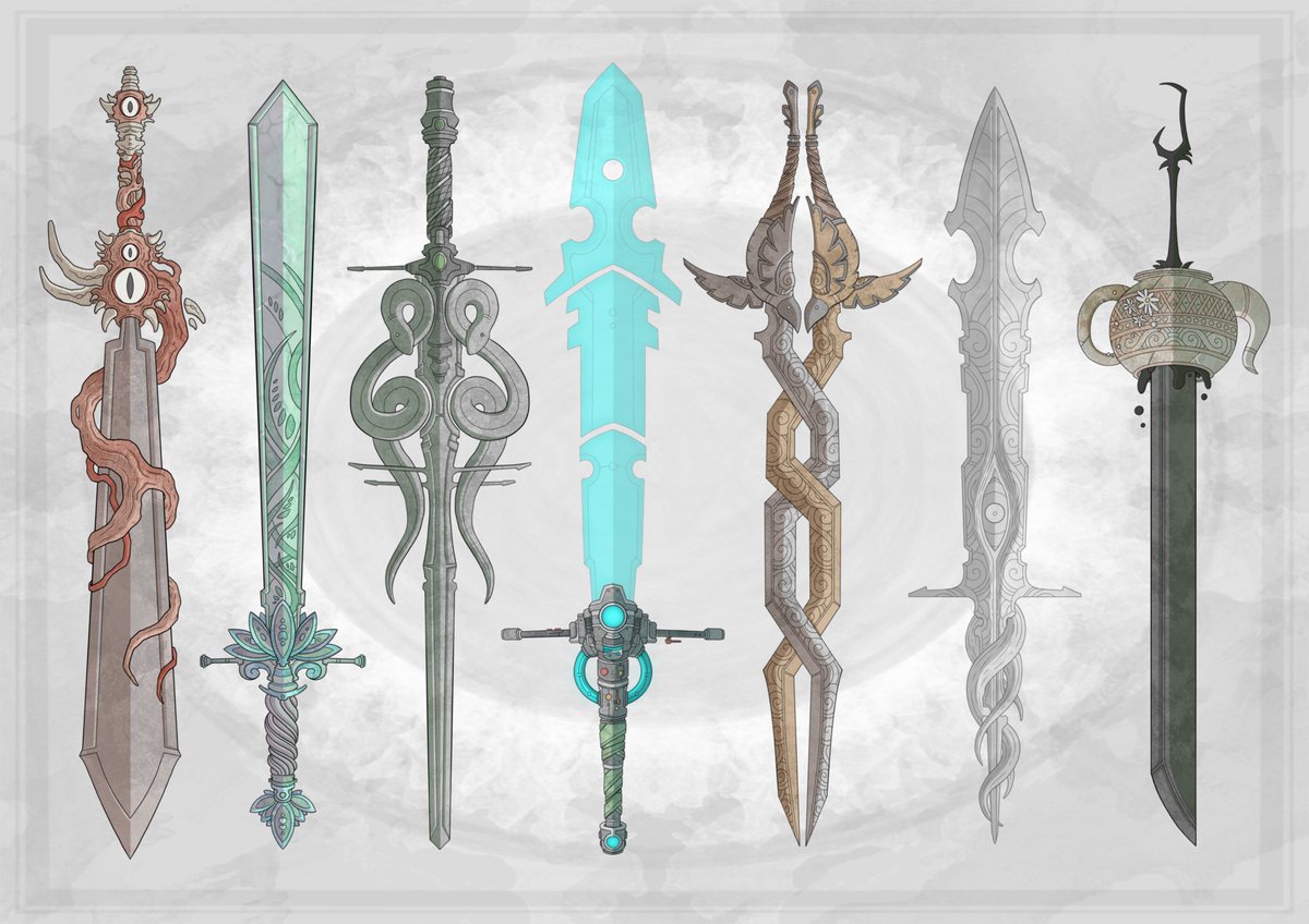 #SWORDTEMBER2022 WEEK 3 - Here’s all the swords I’ve done this month so far - nearly done! (Working from @faith_schaffer ‘s prompt list!) - (Animated versions below!) #swordtember