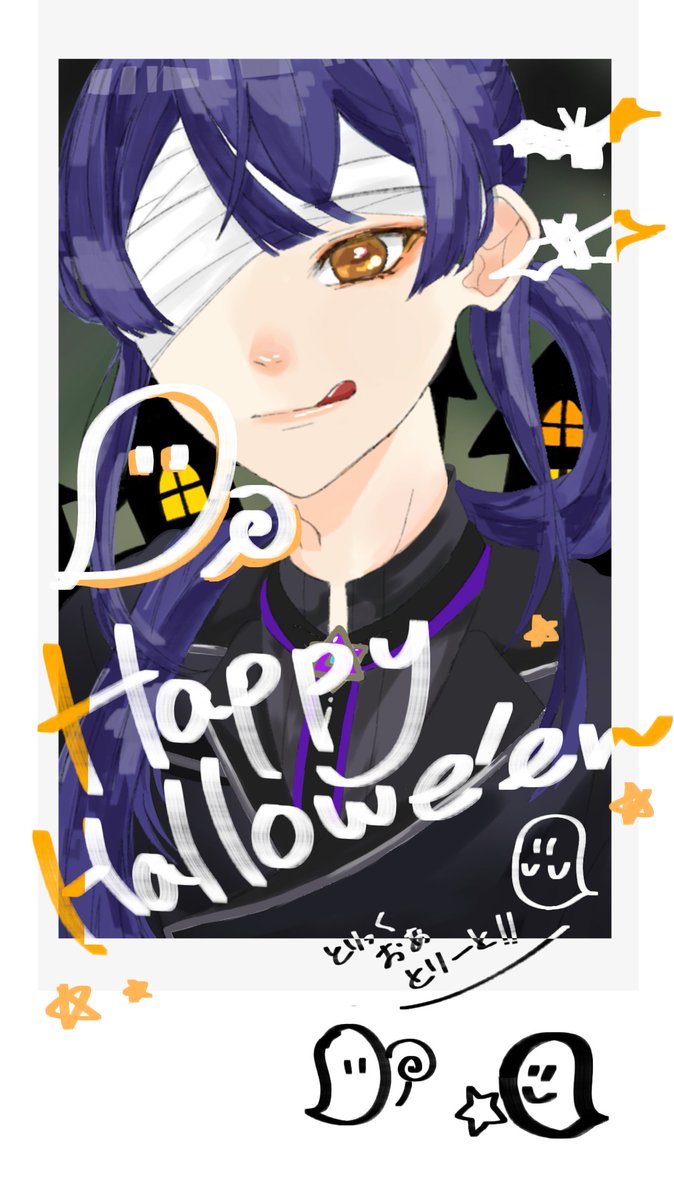 2 14 ¦ trick or treat🎃 ¦ チェキ風 ¦ お菓子をくれなきゃイタズラすんぞー #長尾百景 #ハロウィンイラスト 22/10/31 00:05