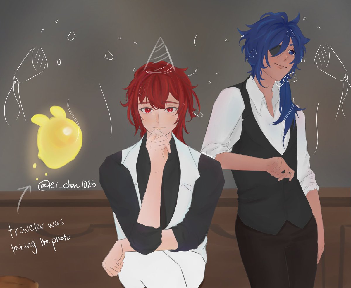 more than a month late but「Happy Birthday Diluc!」 #ディルック生誕祭2022 #原神 #GenshinImpact #genshinimpactfanart #Kaeya #Diluc