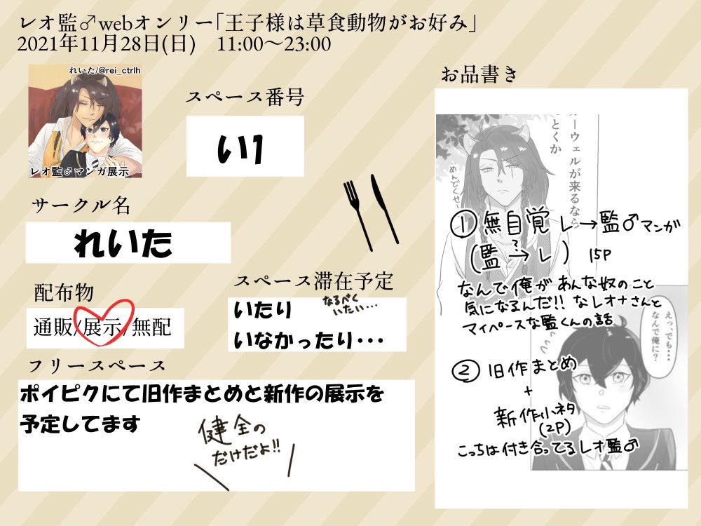 1/16開催の監督生♂受けWebオンリーに「え2」で参加させていただきます! レオ監♂マンガ過去作と新作を展示します よければ遊びにきてください~ #男監受Webプチ #男監受Webプチ参加