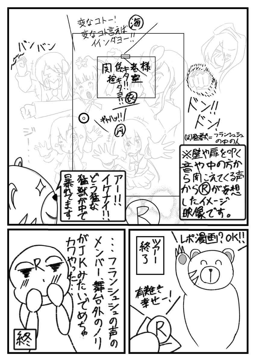 ゾンサガ3Dバーチャルライブの抽選特典、舞台裏ツアーのレポート漫画、最終です(4/5, 5/5) 参加できなかったゾンビィ達にも内容を伝えるべく描きました。 #ゾンビランドサガ #3DVirtualフランシュシュ #抽選特典 #レポートまんが 1p: twitter.com/rei_mkt/status… 2-3p: twitter.com/rei_mkt/status…