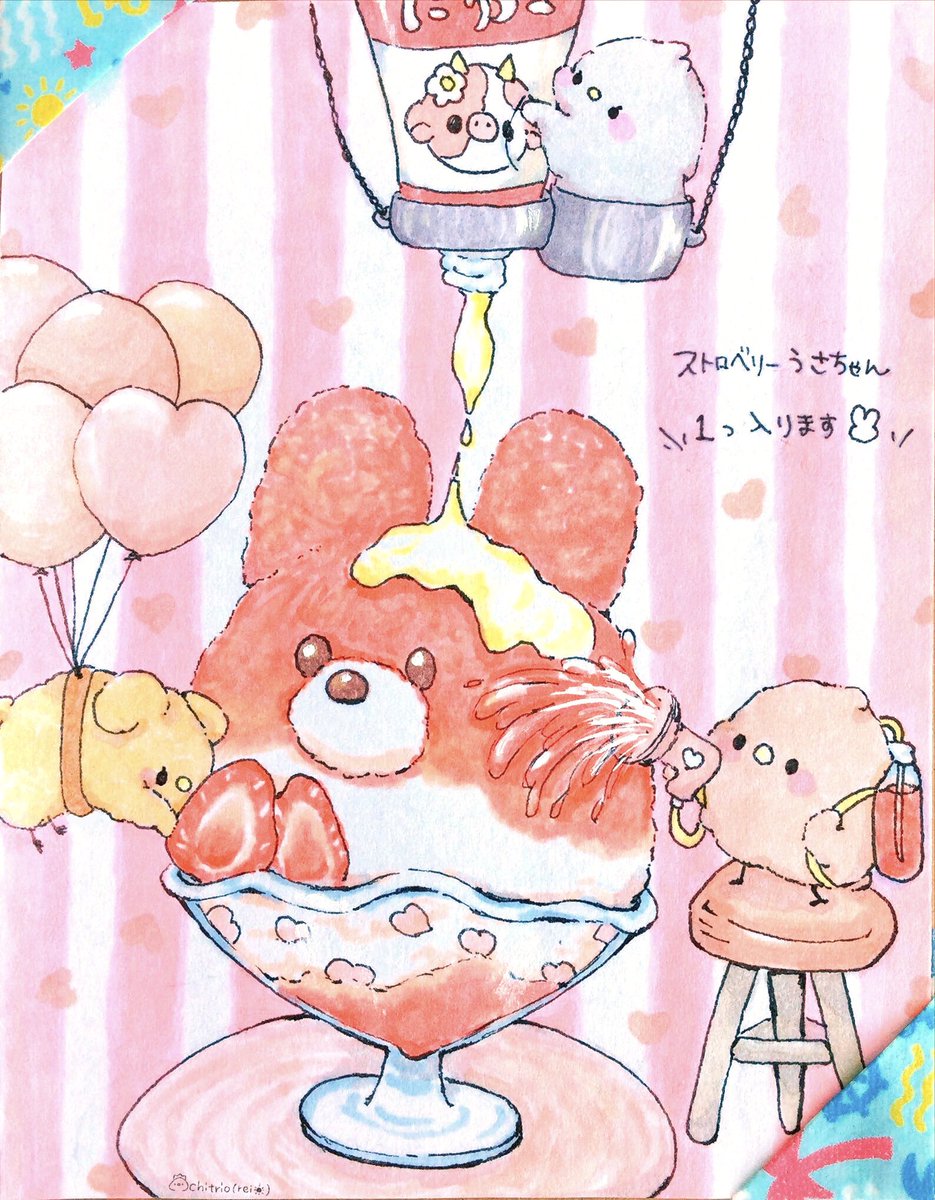 ラズベリーチョコナッツ抹茶アイスクリームでひんやり(՞ ܸ . . ܸ՞)🍨 毎日暑いので皆さんもお気を付けてくださいね🫶 (Cooling down with raspberry, chocolate nuts, and matcha ice cream!! Stay cool ✨) #ゆるいイラスト #アナログ絵 #illustration