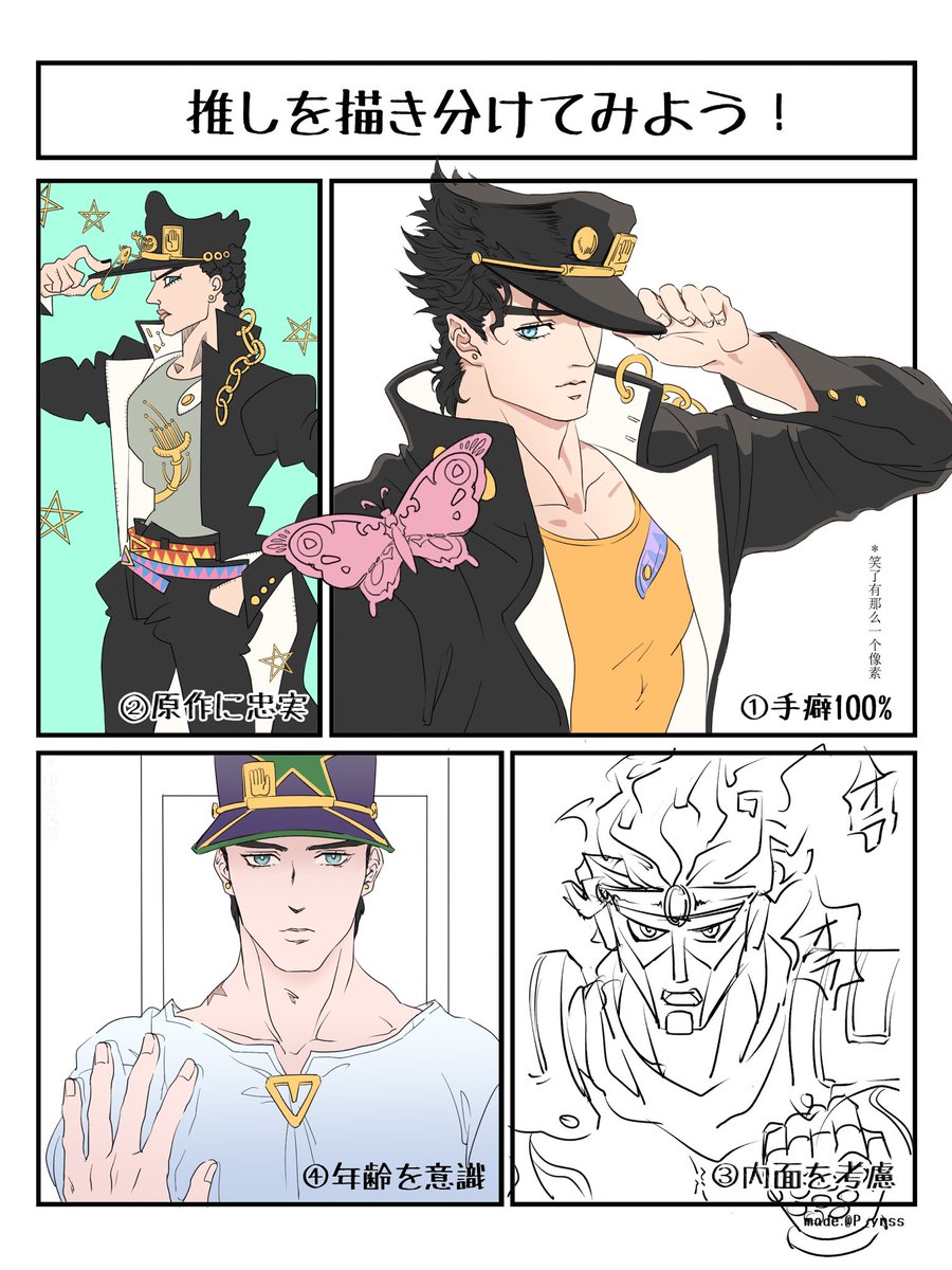178 750 🍒:承太郎、に〜 🐬:...... というシーンをモチーフに描いたんだけど... 20/07/20 01:02