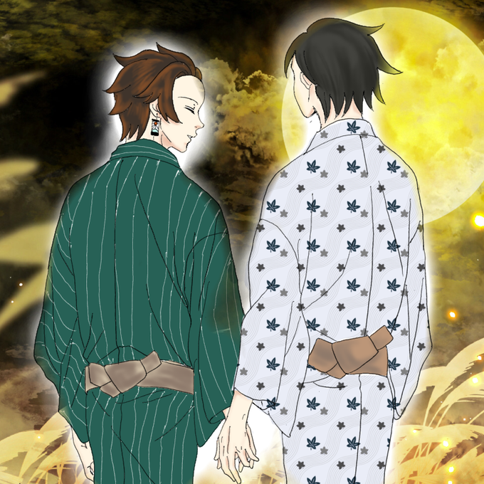 11 66 #義炭版真夜中のお絵描き60分一本勝負 #義炭 お月見 せっかくきれいな月夜なのに、お互いしかみていない二人です😅 21/09/22 19:53