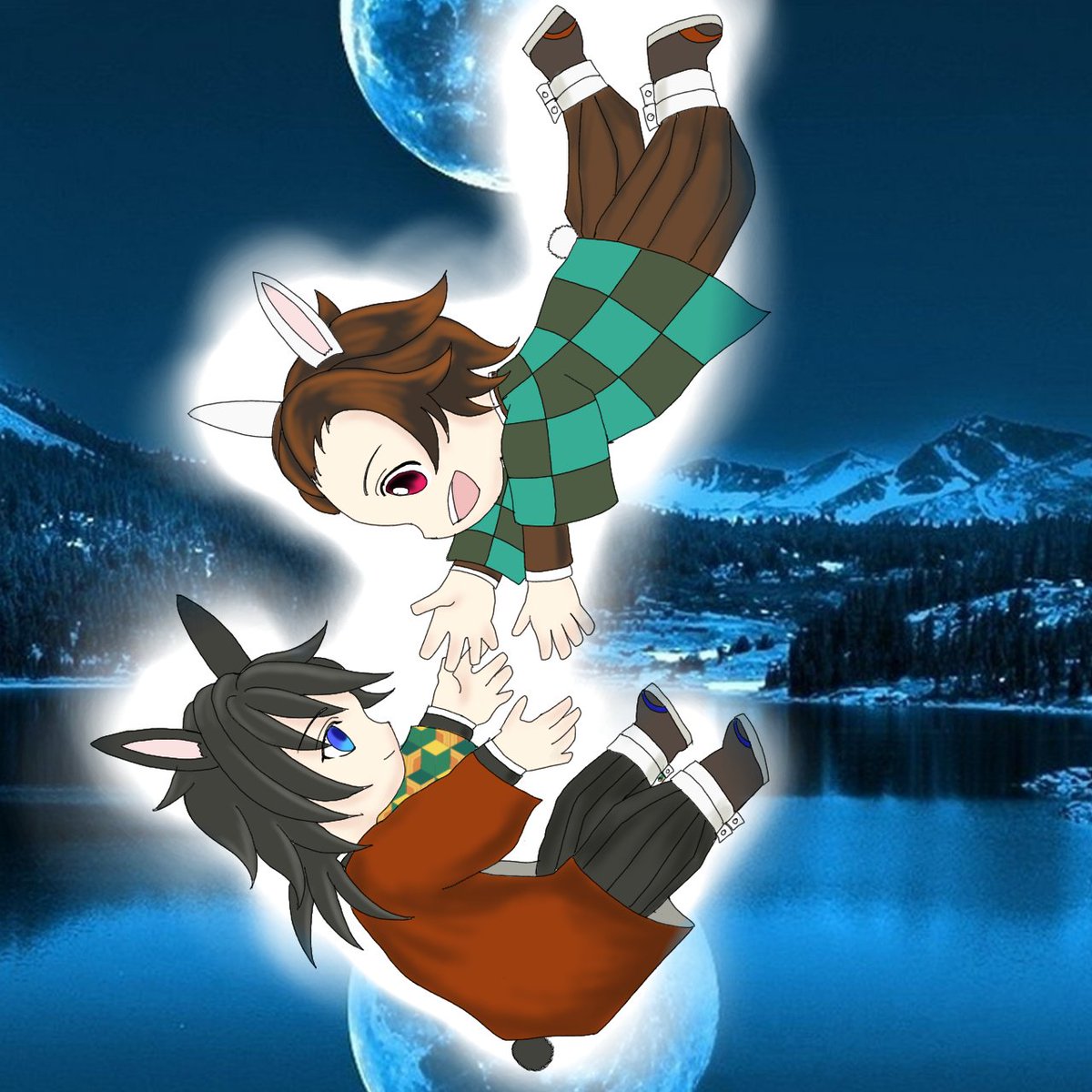 #義炭版真夜中のお絵描き60分一本勝負 #義炭 【うさぎ】こんな未来が待っているとは思わなかった。空にある月、水に映る月、これからはずっと一緒に。