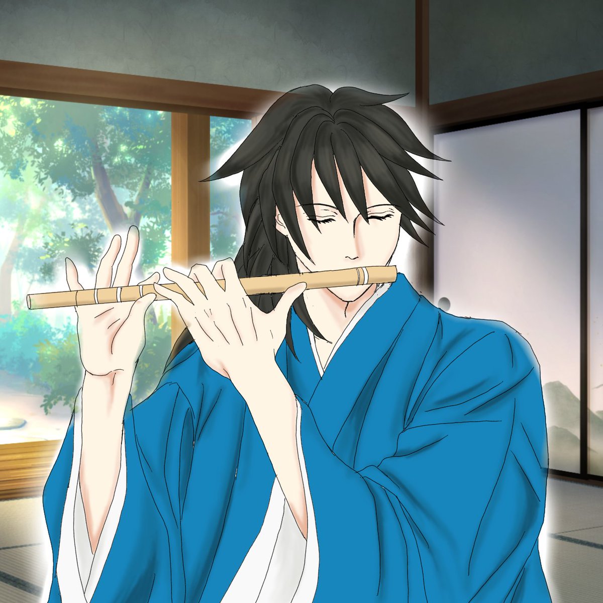 #義炭版真夜中のお絵描き60分一本勝負 #義炭 過去のお題から【笛】です。🎴に聴いてもらうために笛の練習をする🌊さんです。