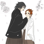 #義炭版真夜中のお絵描き60分一本勝負 #義炭 過去のお題から「背丈」です。🌊さんにキスしようと頑張る🎴。🌊さんがムフフ顔です😅