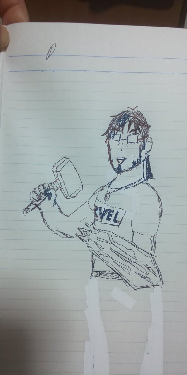 なんとなく描いて見たベルさんがマーベル展でハンマーと盾で遊んでる姿 #デラスのお品書き #創作 #願望