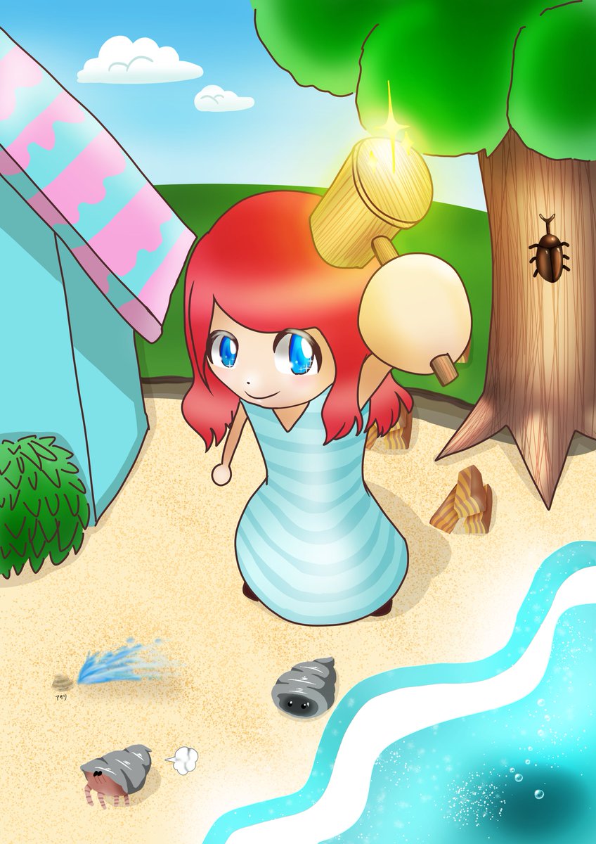 #イラスト初心者 #イラスト #イラスト好きさんと繋がりたい #絵描きさんと繋がりたい #絵描きさんとつながりたい #あつまれどうぶつの森 #あつ森 #ファンアート #あつ森イラスト ゲーム内でも砂浜の上にお家を立てています 海の幸が豊富で空港にも近い便利な場所