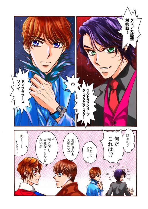 ⑩「本日のスーパーヒーロータイム」 今朝のドンブラザーズ見てから描き始めました ポエム発言にまだソノイ成分が残ってるの、微妙に辛い……でもタロウが嬉しそうだったしな 普通にタロウとソノイが並び立つ日は来るのか? #特撮版深夜の真剣お絵描き60分一本勝負R