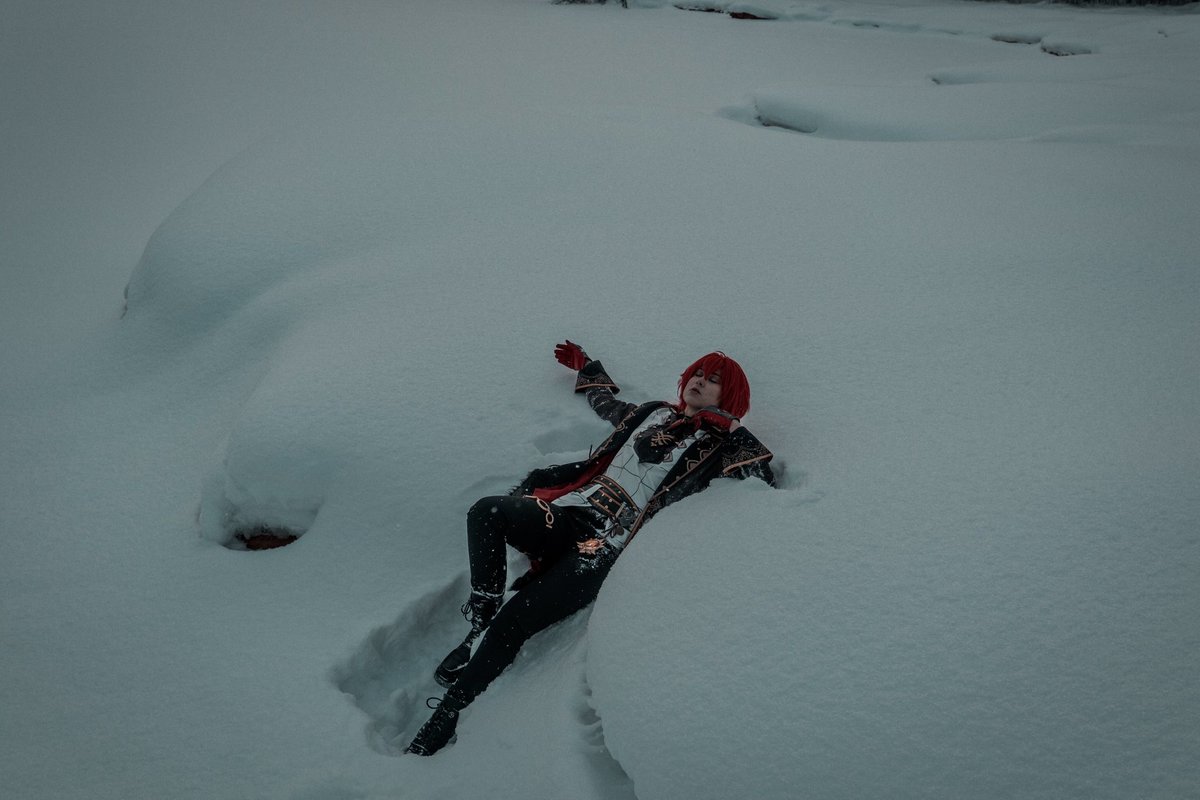 just my favourite winter photos of Diluc🖤 fd: #GenshinImapct ch: #Diluc #cosplay #cosplayer #Genshin #Genshin_Impact