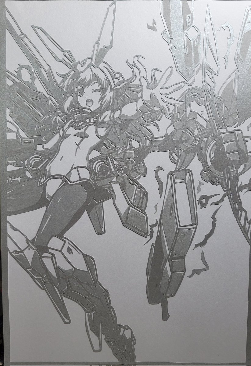 #フレームアームズ・ガール #バーゼラルド #切り絵 #ファンアート ファンアートですが素敵なタグなので…切り絵です。 新年初切り絵はアニメ版バーゼ【メガミデバイス】パッケージが可愛いすぎたのでつい…。 銀色画用紙って言ったら信じます? #うさぎ年なのでバーゼラルド挙げる見た人もやる