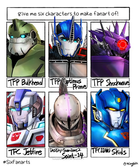 Sixfanart 챌린지 완성했습니다~ 이렇게까지 힘줄 생각은 없었는데 어쩌다보니... 채색을 워낙 못해서 퀄리티가 들인 노력에 비해 맘에들진 않지만 ㅠㅠ 로봇칭구들(하나는 왹소) 신청해주신 분들 감사합니다! #sixfanart #SixFanarts #SixFanartsChallenge