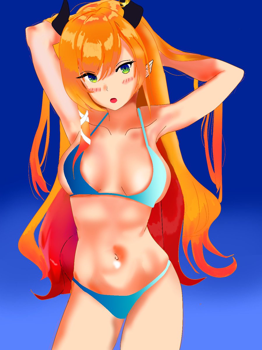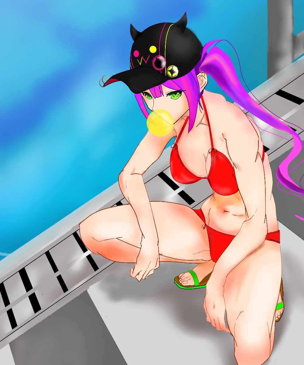 最近暑くなってきたので 水着姿のトワ様!なんでプールサイドでヤンキー座りしてるのかは知りません...w #TOWART