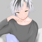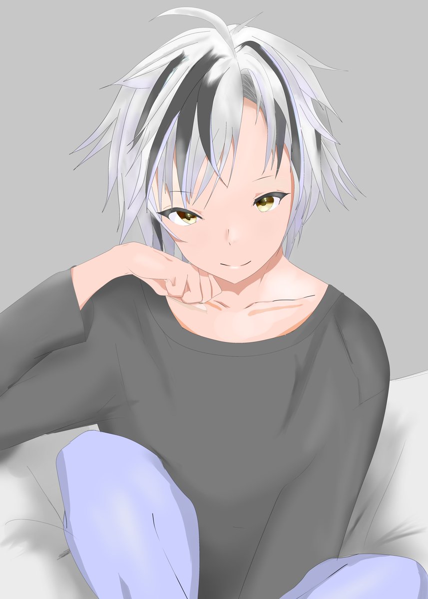 14 83 #漆黒の水鏡 初めての男の子描いた グレーには薄い青紫がよく似合うね 21/02/24 20:32