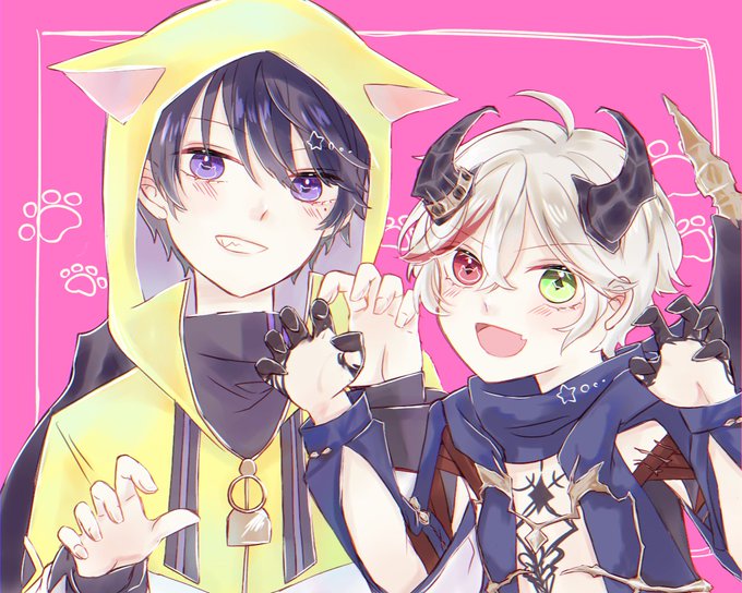 🐾「がうがう!ばうばう!」 😈「ガウガ□&○%$■☆♭*:!£」 🐾「あ〜〜〜言い分白いわ」 😈「まってふざけてる場合じゃなかったかも」 連携完璧のつよつよ傀儡勝利おめでとうございました〜〜☺️☺️ちょうど描きながら見てたのでめちゃくちゃ嬉しかった〜〜‼️ #ぜるあーと #れれい美術館