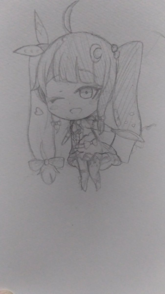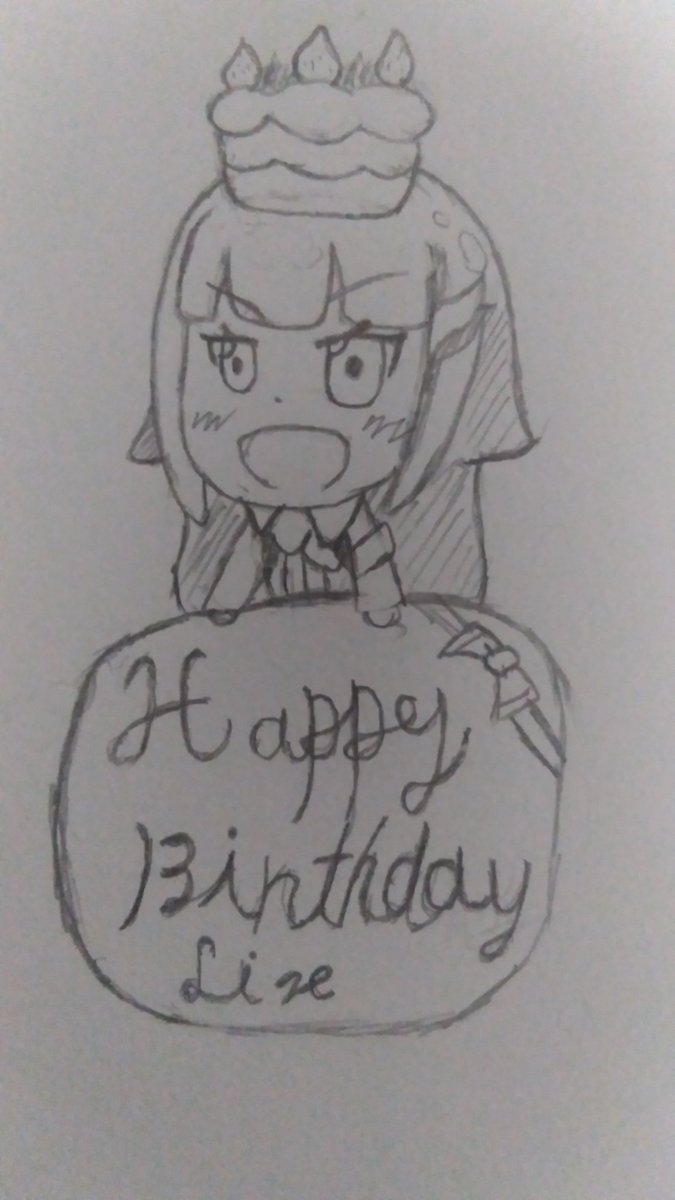 間に合った!! アナログ下手絵で申し訳ないしシロも塗ってないがこれが自分の今の精一杯 受け取ってください #リゼBD配信 #ヘル絵スタ