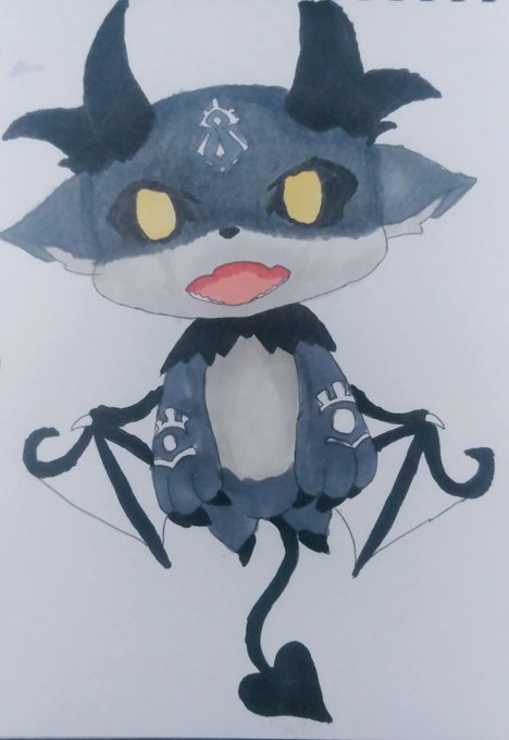 今日はでびでびでびる 配色ミスったなぁと 結構でび様思ったより明るい色してた それだけが残念 目はキレイに塗れたかな #でびでび・でびる #でびるさまにささげるえ