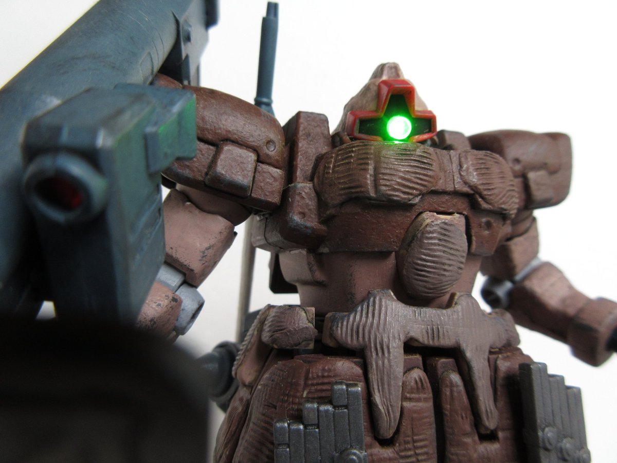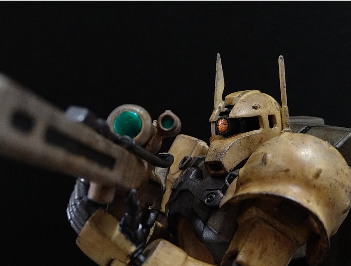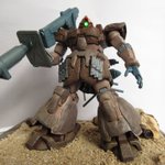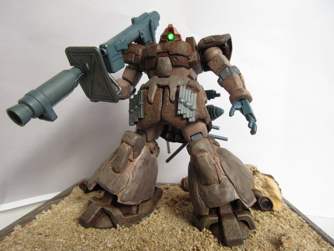 3 13 ドムトローペン デザートver 砂漠でのゲリラ戦イメージでミリタリー風仕上げに、頭部改造してミライト仕込みました。塗装に使ったファレホの素晴らしさに感動(*´ω`*) #ガンプラ 20/03/01 09:44