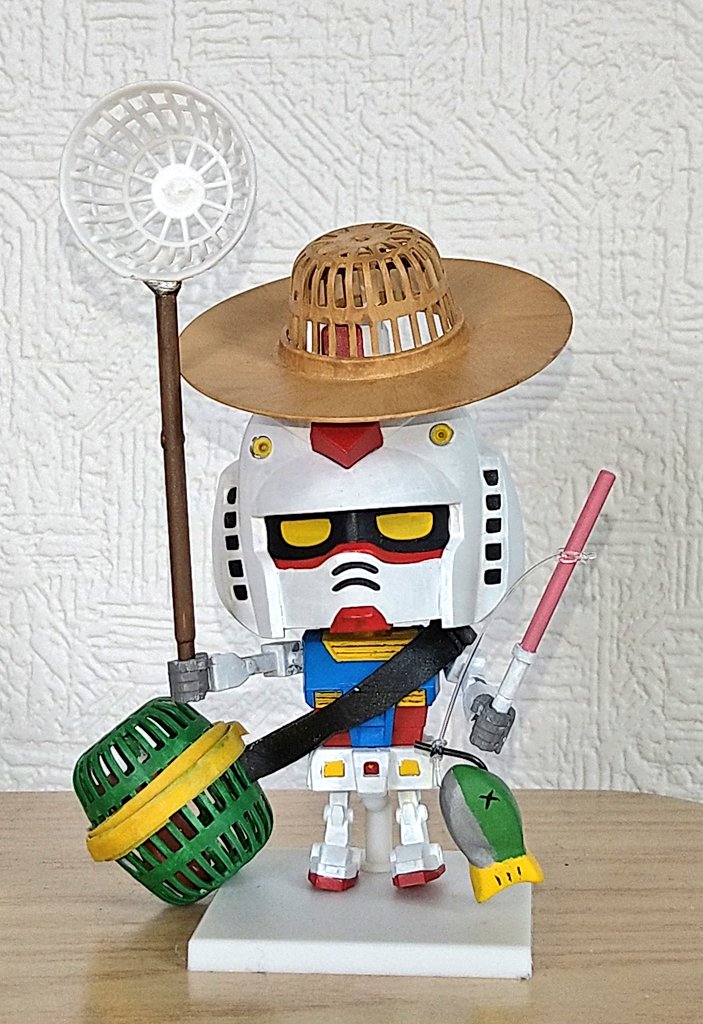 #今月作ったプラモ晒そうぜ ①オリジナルAB プロトタイプゼルバイン ➁木馬 ③ガンプラ君夏休み満喫装備 ④ライジングガンダム