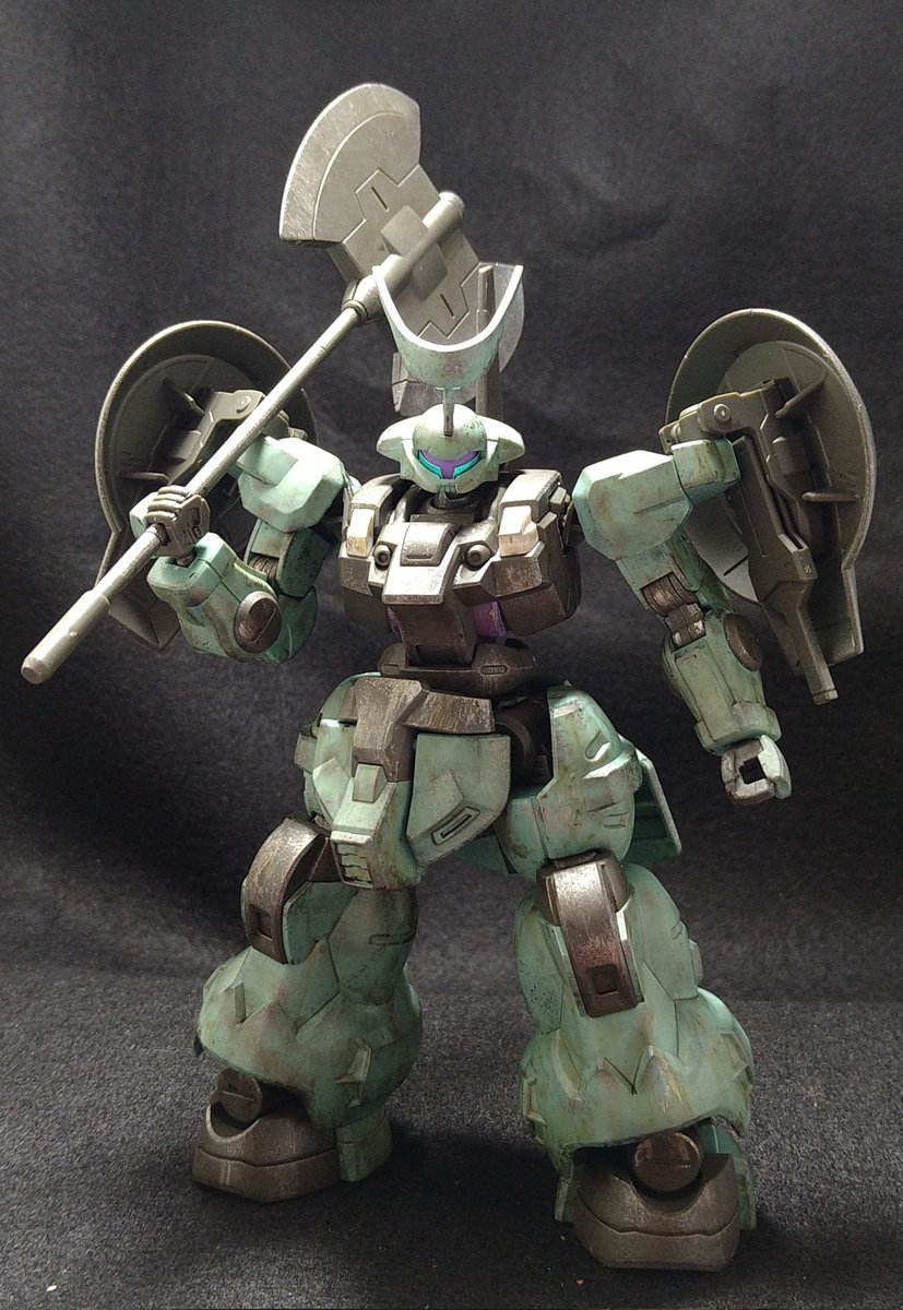 #ガンプラ #ガンプラの画像を貼るとRTされると聞いて 『ディランザ ラウダ専用機』 無骨なデザイン格好いいディランザをラウダ専用機verで作成しました。 無塗装、ウェザリング仕上げ 大型ヒートアックスがよく似合う、作り易くて格好いいキットでした(๑•̀ㅂ•́)و