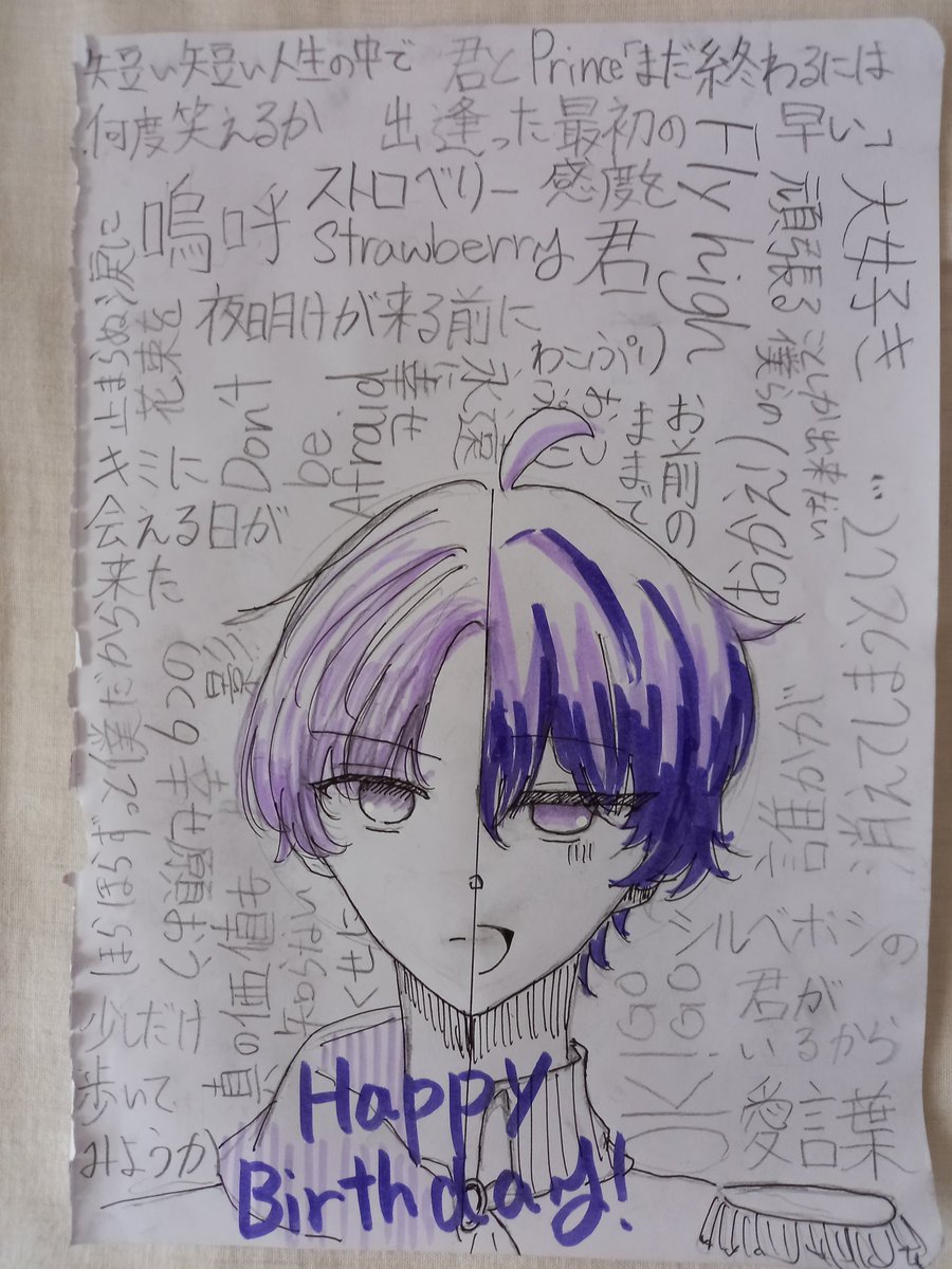 #ななもり誕生祭2022 #ななもりぎゃらりー 遅くなりました!! なーくん、お誕生日おめでとう!! 文字は全部すとぷり(メンバー個人曲含む)の曲から歌詞を少しずつ取ってきました。どれがどれか分かりますか?