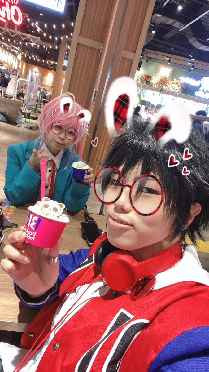 #アコスタセブンパーク天美 お疲れ様でした〜!! になちゃんとヒプマイ🙌楽しかった〜😭🙏 あとめちゃくちゃお声掛け頂きありがとうございました!お菓子完売! ヒプマイ久々だったんですが人権あります!!🙌 1枚目はうさぎちゃん食べちゃった乱数くん 2枚目はうさぎの刑にされる乱数くんです