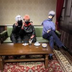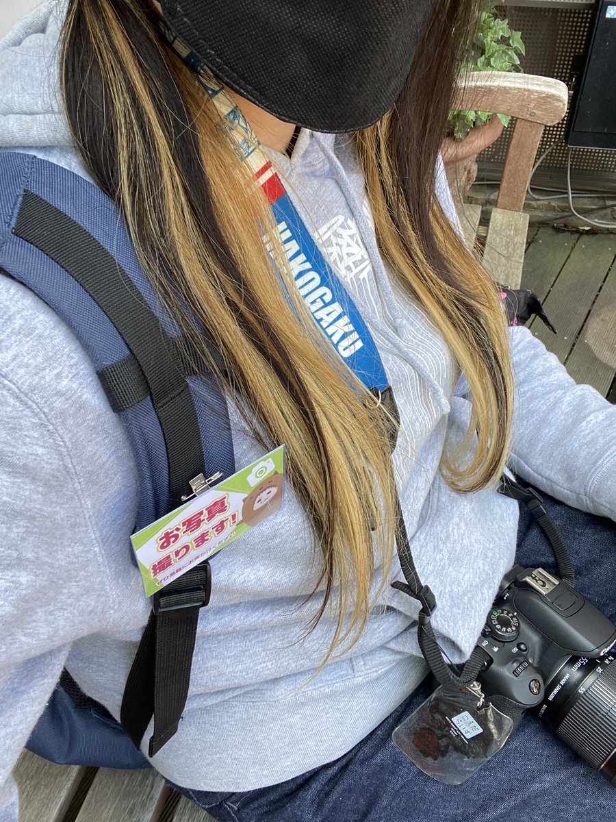 ヒプマイ(バスブロ)のトレーナー、箱学のカメラストラップ、なんかキーホルダーいろいろのうるせえオタク… お写真はよさげだっち!自然光すごい まぁみんな集まってるところのタリーズおるけど #アコスタみのおキューズモール